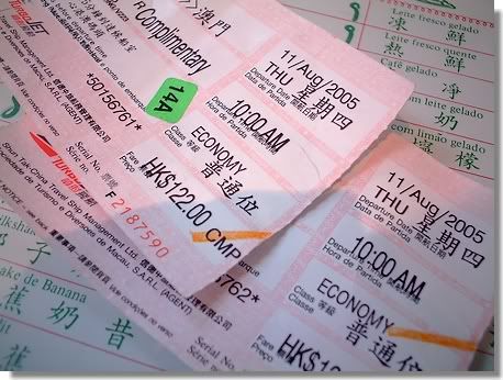 零五年八月的其中一個星期四,請假走到澳門一日遊,行程雖然都是一般的飲飲食食,但就是從這日開始,我知道自己終於都要離開一個我不願走的一個地方。我記得,永遠記得當日是零五年的八月十一日。相片為澳當日的粉紅色船票。